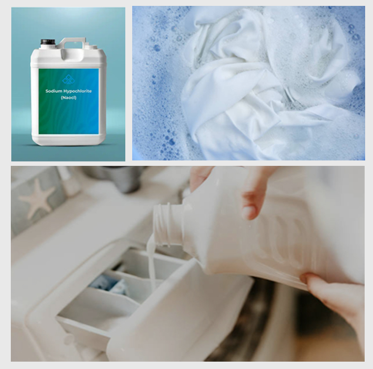 Sodium hypochlorite (NaOCl), commonly known as bleach, is a chemical solution produced by reacting chlorine with sodium hydroxide. Both these key components are derived from our chlor-alkali process. Bleaching agent in Paper and Textile & Fabri-care Industry.